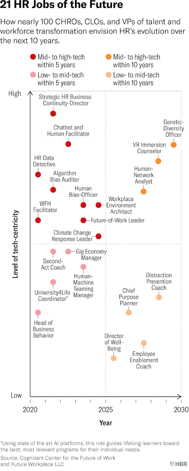 Хотя некоторые из обозначенных нами профессий представляют собой совершенно новые должности, другие — это лишь новые обязанности, которые становятся все более важными по мере того, как HR переосмысливает и перезапускает свою стратегию в свете пандемии. Все должности являются воплощением пяти основных тем, с которыми мы столкнулись в нашем исследовании.