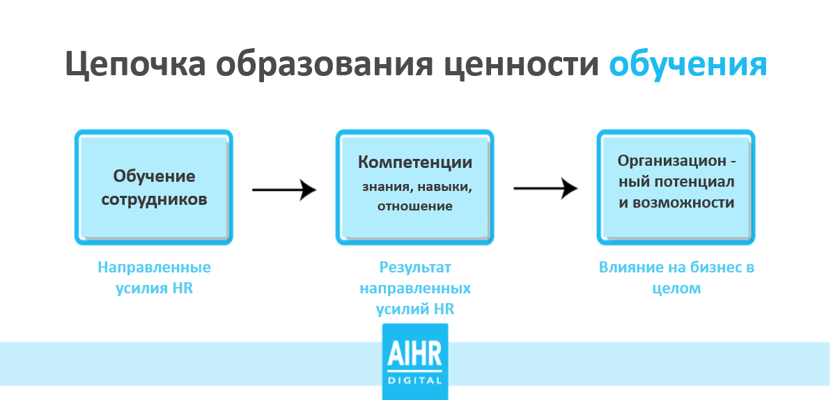 Это означает, что цикл начинается с бизнес-стратегии, которая транслируется в HR-стратегию, организационный дизайн и различные HR активности, такие как подбор, обучение и развитие, активности по вознаграждению, и вплоть до ухода сотрудника.